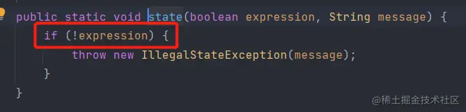 是null就抛出异常,而state()却不一样,为false时抛出异常,所以这里的表达式填我们想要的结果。