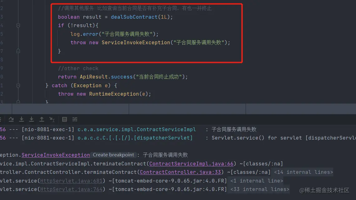实际项目中我们可能还需要调用其他服务暴露出来的接口,调用失败后抛出自定义的异常