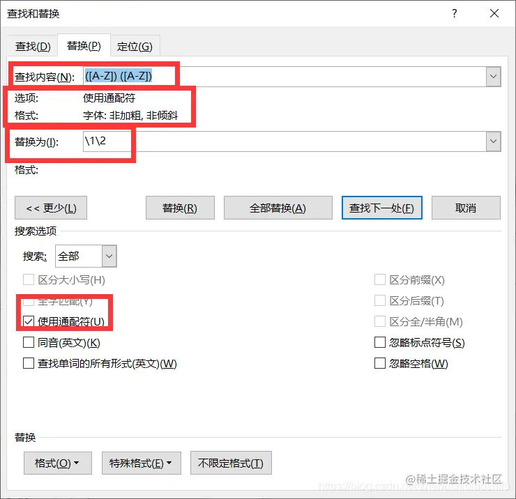 修改查找内容为([A-Z]) ([A-Z]),重新执行替换: