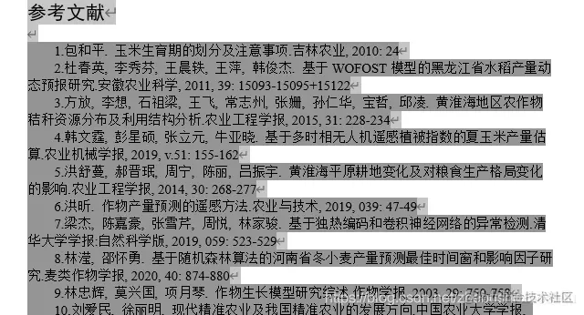 首先,选中Word文件的参考文献部分(不要选中我们所写论文的其他部分)。