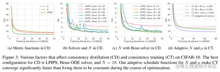 值得注意的是,这两种训练方法都不需要对抗训练,并且都允许 Consistency Models 灵活采用神经网络架构。