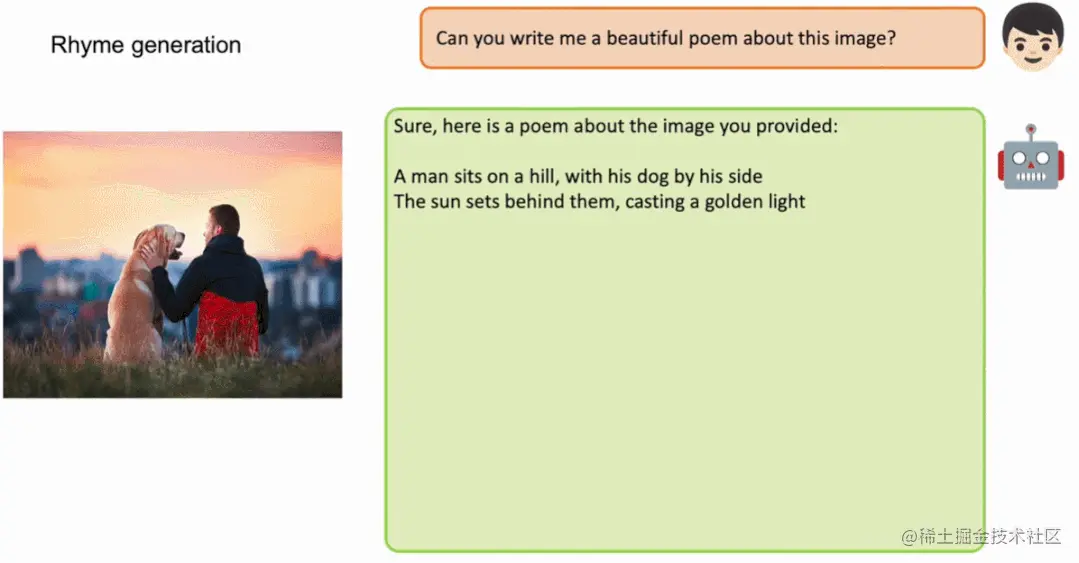 MiniGPT-4 展示了许多类似于 GPT-4 的能力,例如生成详细的图像描述并从手写草稿创建网站。此外,作者还观察到 MiniGPT-4 的其他新兴能力,包括根据给定的图像创作故事和诗歌,提供解决图像中显示的问题的解决方案,根据食品照片教用户如何烹饪等。
