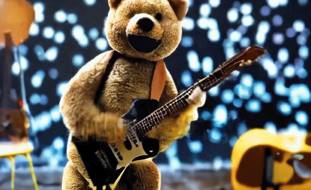 我们来看几个文本到视频生成示例,比如「弹电吉他的泰迪熊、高分辨率、4K」。