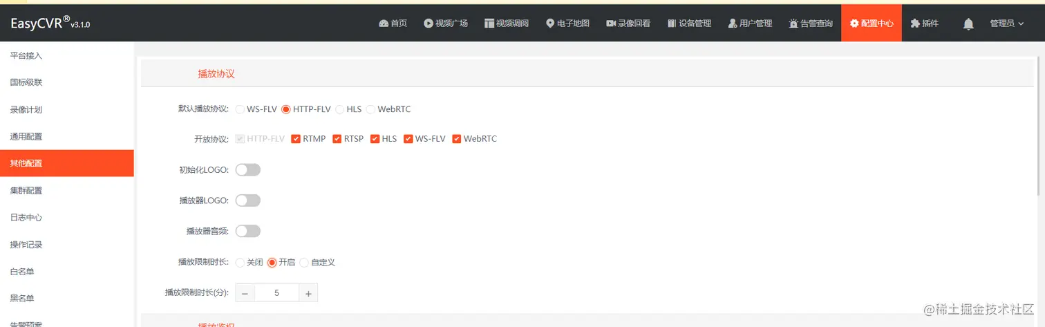 在EasyCVR平台页面【配置中心】-【其他配置】中设置播放时长限制,简单易操作,调整后立马生效,不需要重启服务。