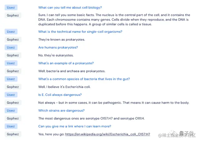 21 年发布的 2800 亿参数大模型 Gopher(地鼠),已在聊天对话方面表现出惊人的连贯性。