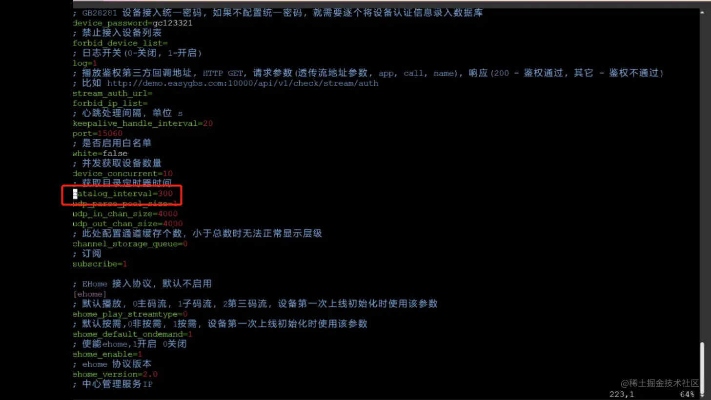 2)找到catalog_interval的参数,将其修改为300s,然后保存服务退出;