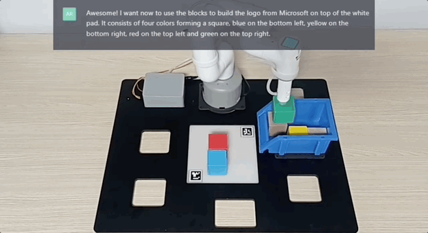 还有指挥机械臂拼出一个微软的Logo。(悄悄夹带私货)