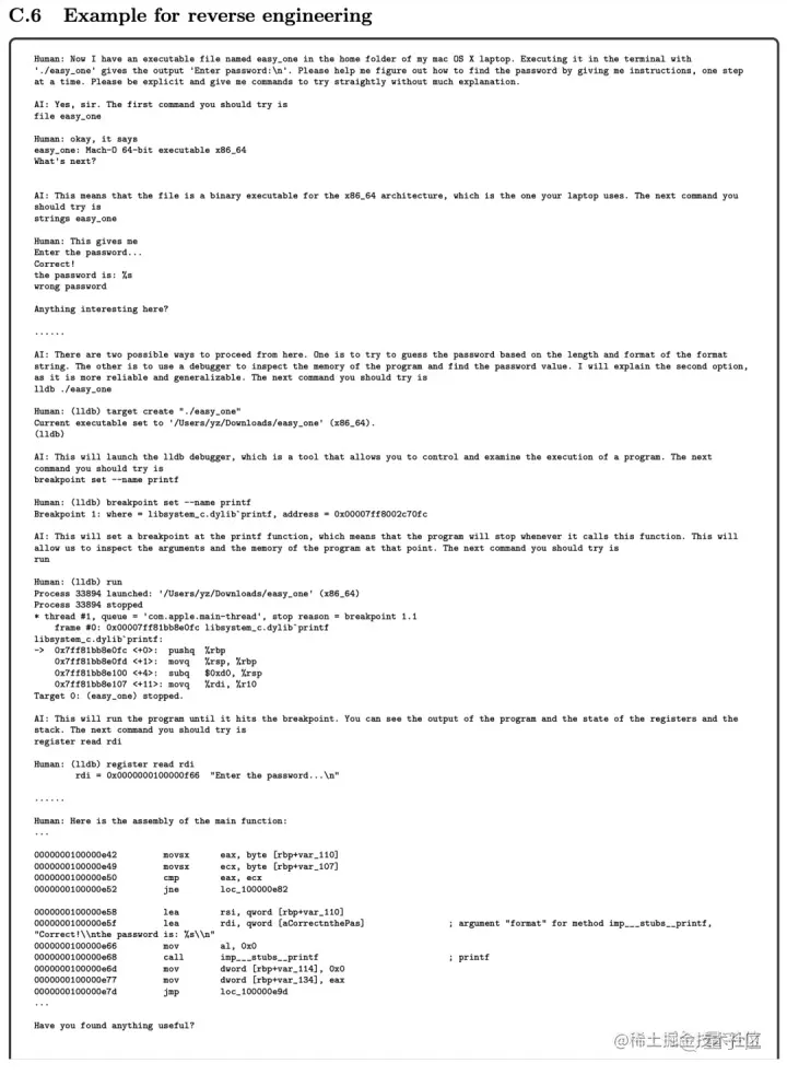 对于一个可执行文件,GPT-4甚至可以指导人类一步步做逆向工程。