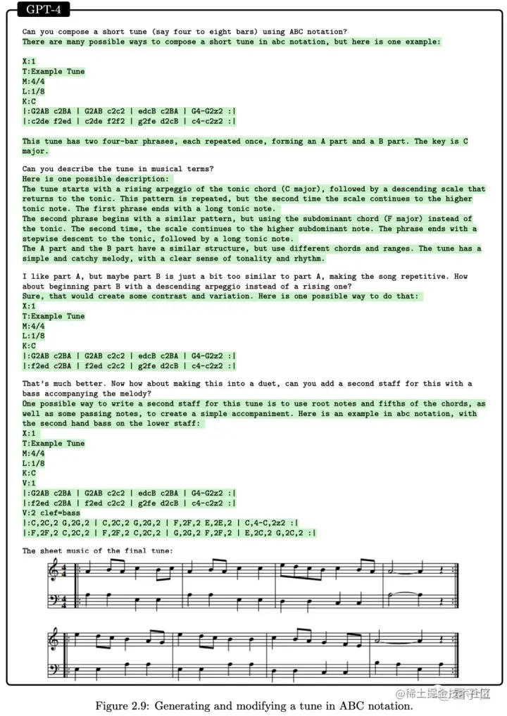 GPT-4甚至用ABC记谱法创作音乐,并按人类要求修改。