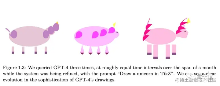 并且在GPT-4快速迭代的开发阶段,每隔相同时间就再让GPT-4画一次,也可以看出结果复杂性明显增加。