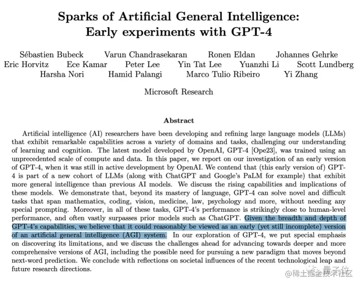 我们相信,GPT-4的智能标志着计算机科学领域及其他领域真正的范式转变。