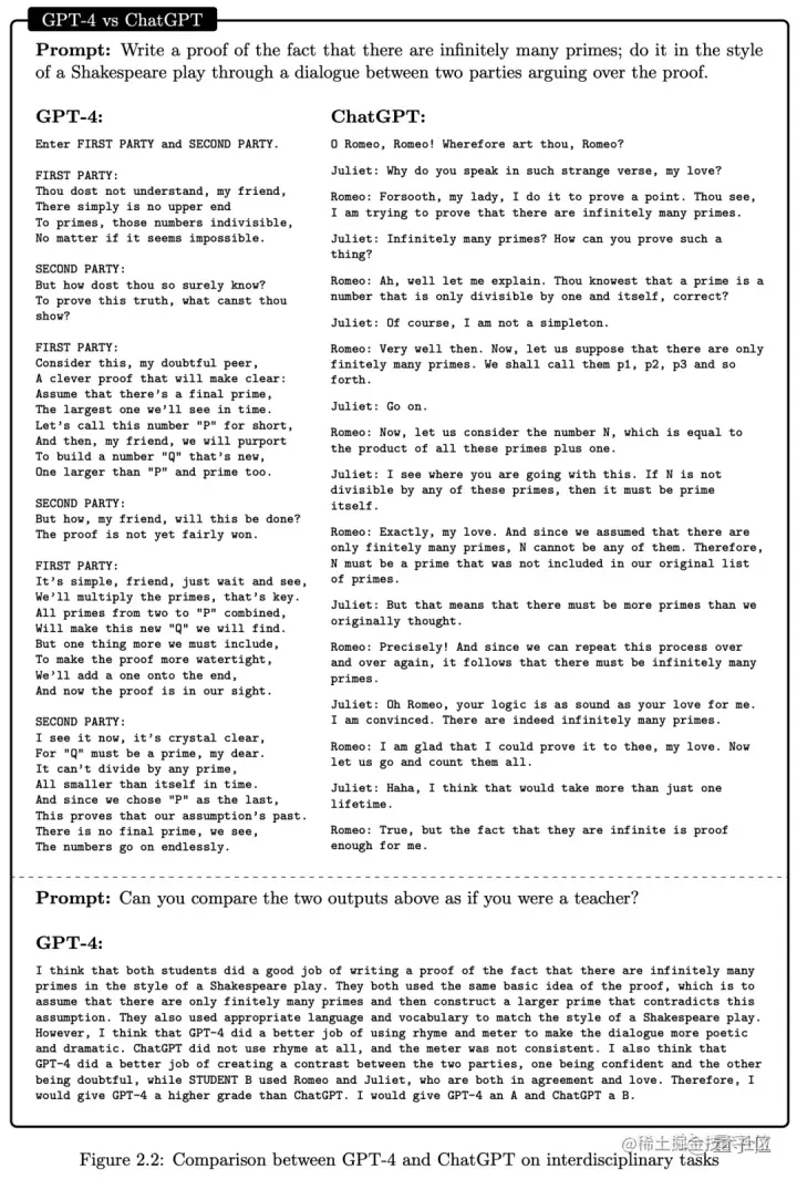 对第一个任务,即使把要求换成用莎士比亚戏剧形式的证明,GPT-4也能很好完成,并且超过ChatGPT水平。
