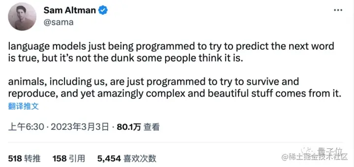 语言模型只是被设计用来预测下一个词……动物、包括我们人类本来也只被设计成生存和繁衍,但那些复杂和美丽的东西正是来自于此。