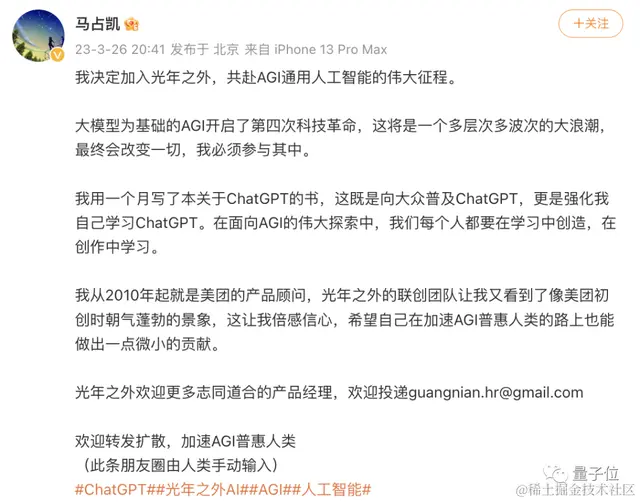 如今,“对标OpenAl”的光年之外联创团队让他又看到了“像美团初创时朝气蓬勃的景象”,于是倍感信心,希望“自己也能做出一点微小的贡献”。