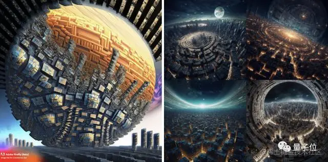 来看两者的生成结果,左边是Firefly,右边MidJourney(下同):