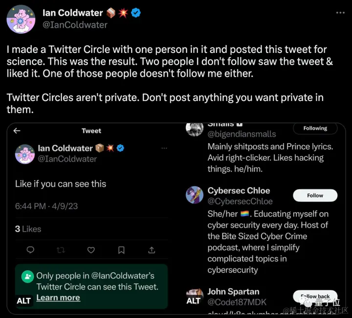 要知道,推特好友圈的功能主打的就是私密性,可以让人发一些只想让好友看到的内容,比如八卦、吐槽甚至私密照啥的……结果现在这个私密性,荡然无存了???