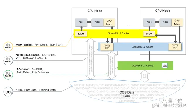 同时,GooseFS按需将热数据缓存到GPU内存和本地盘中,利用数据本地性提供高性能访问。
