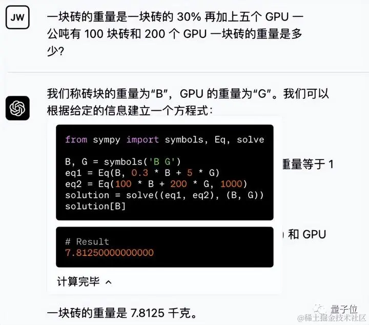 ChatGPT几乎没啥数学技能,但它能轻松地通过生成Python代码来完成这件事。