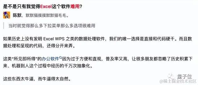 他认为,如果没有Excel等软件,数据统计及处理工作需要所有人敲代码完成。正是由于「所见即所得」的办公图表软件,今天我们才能更高效做数据统计及处理工作。