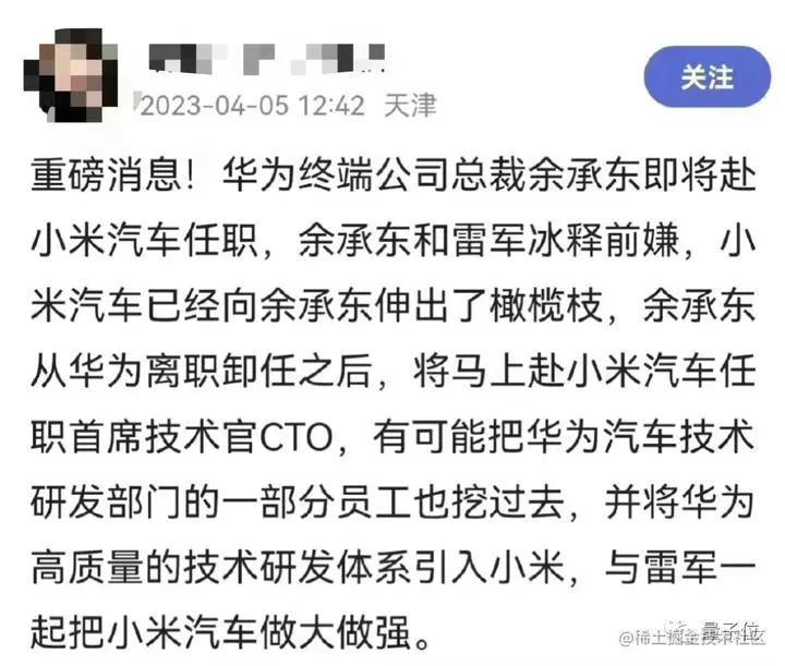 “余承东与雷军冰释前嫌,小米汽车向其抛出橄榄枝”的消息在网上不胫而走。