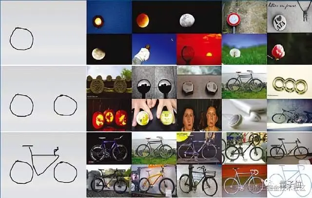 当然,那时候生成式技术没有成熟,业界对大规模数据的训练和处理经验也远不如今日丰富,所以整个过程是在海量数据库中寻找和草图最匹配的那一张。