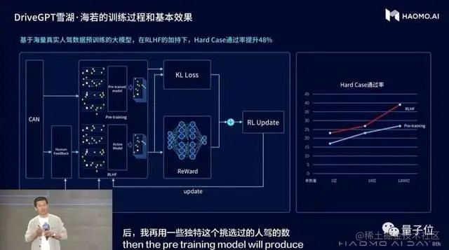 雪湖·海若目前共有1200亿参数量,据毫末初步估计,在RLHF加持下,困难场景通过率提升48%左右。