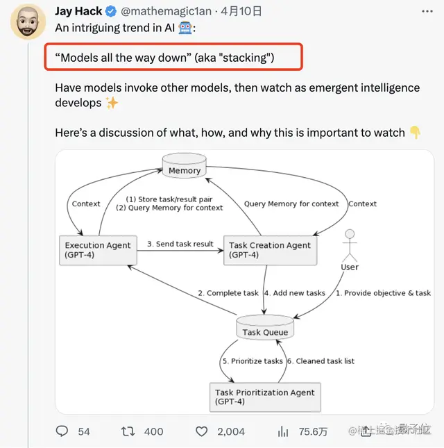 而在推特博主Jay Hack看来,AutoGPT等类似工具的出现,其实证明了智能的本质是“套娃”这件事儿。