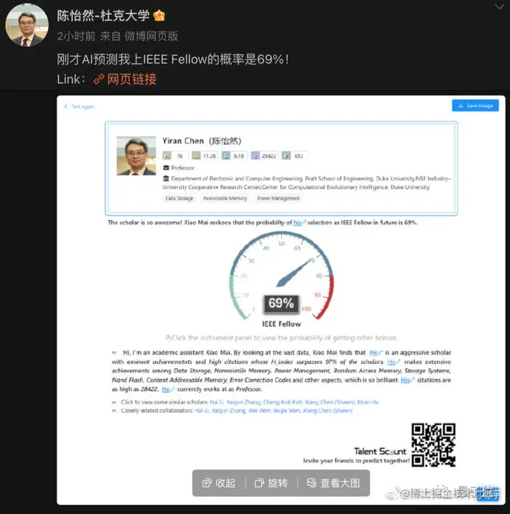 除了GLM-130B,智谱另一个有名的产品是AI人才库AMiner,学界大佬都在玩: