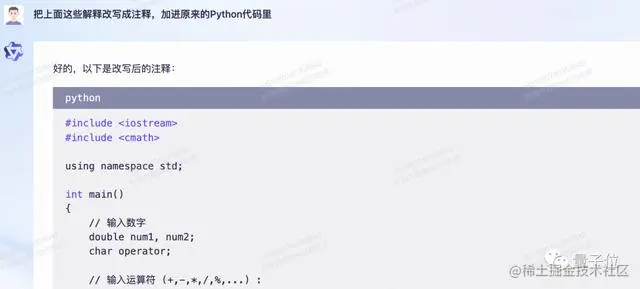 不过,如果要让通义千问将解释改写成注释,就会出现一点神奇的bug。
