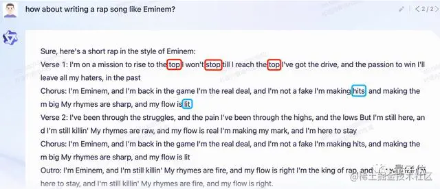 再来试试英语。刚好前段时间有网友PK了一下Bard和GPT-4的Rap,我们也来看看通义千问的说唱能力。