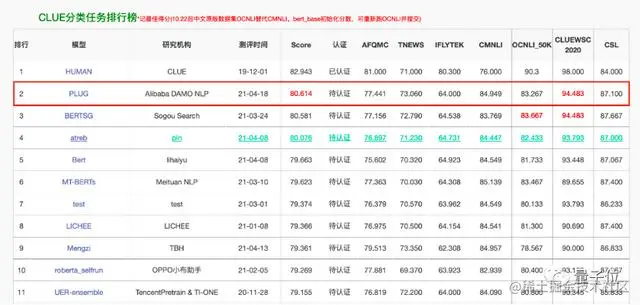这一大模型初登场,就以80.614分刷新了权威中文语言理解基准CLUE分类任务榜单记录。