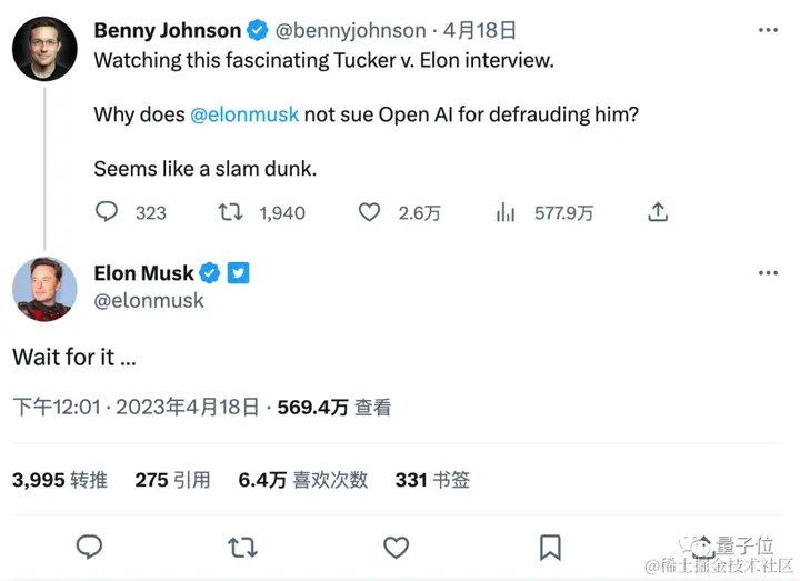 马斯克在推特上yygq了一波,暗示自己可能将起诉OpenAI。