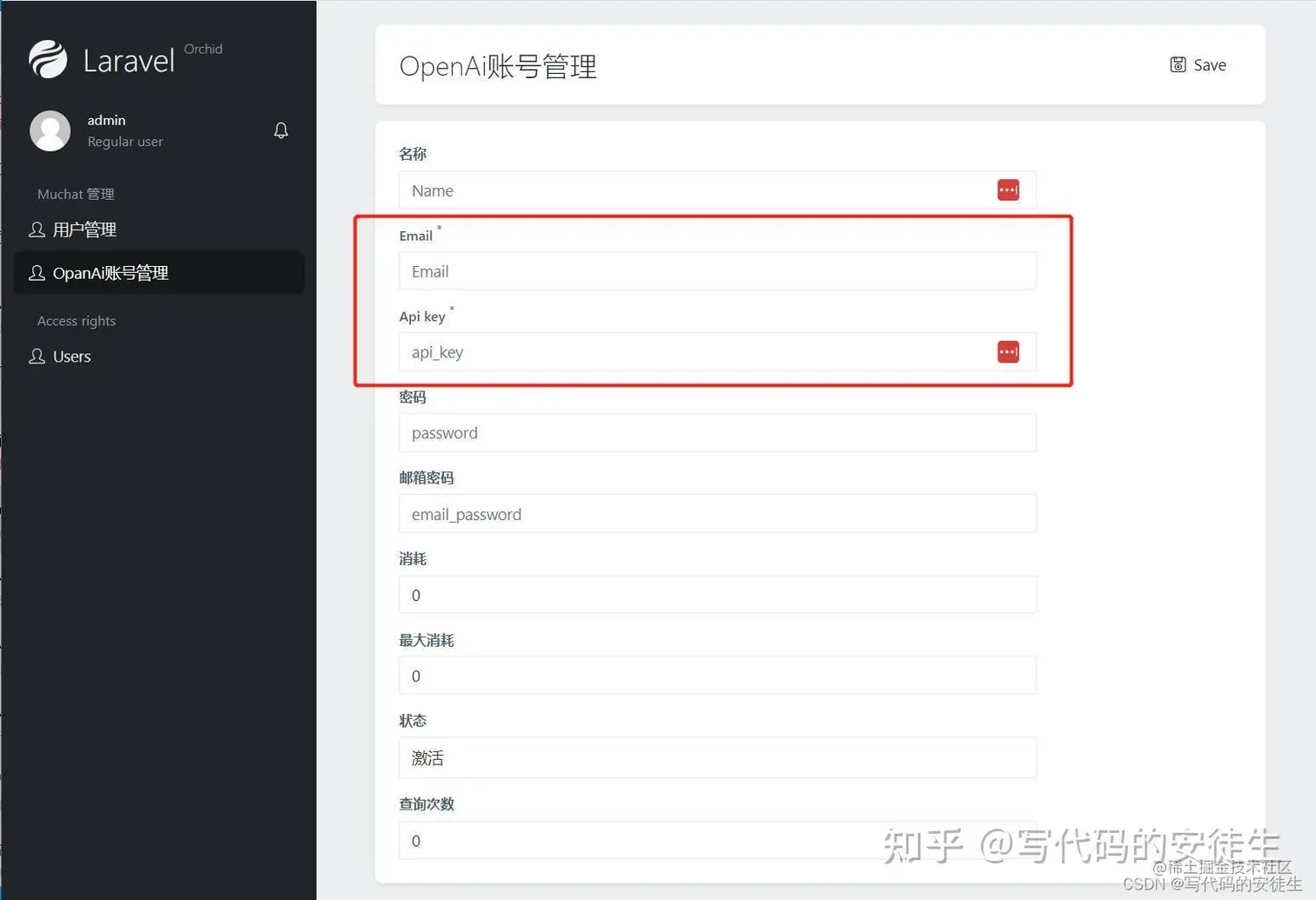 打开 http://localhost:8000/admin/muchat/open_ai_accounts/create