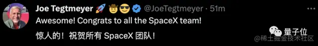 任务虽未成功,马斯克却在第一时间发来贺电: