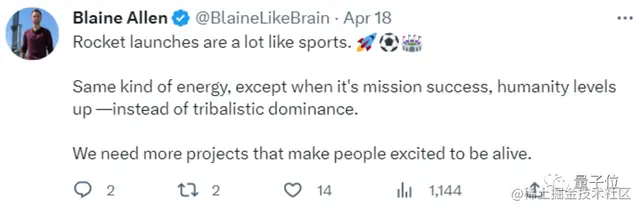 其实火箭发射就像运动一样,都需要庞大的能量。但相比运动,我们需要更多像火箭发射这样让人们“对活着感到兴奋”的事情。