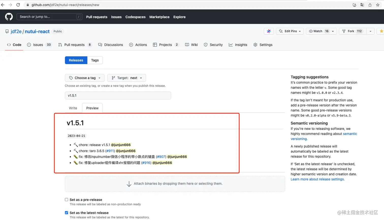 最后我们就可以将本地CHANGELOG.md文件的输出结果,直接整体粘贴到我们的github的releases中发布就好啦~方便又高效