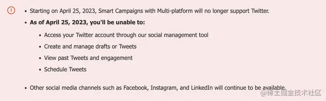 其中提到,从2023年4月25日起,微软Smart Campaigns的多平台服务将不再支持推特。