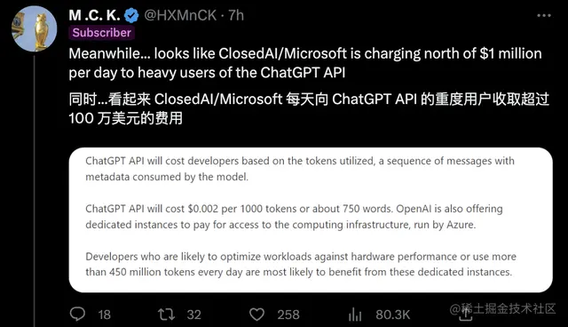 微软怎么好意思嫌推特API贵,CloseAI/微软可是每天向ChatGPT API重度用户收着百万美金。