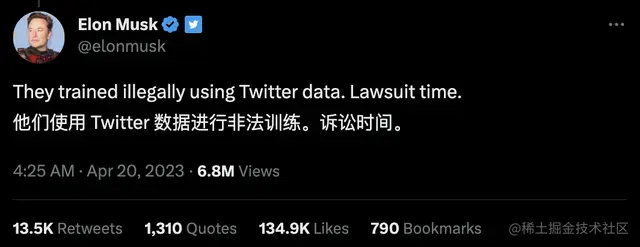 他们在非法使用推特数据训练(大模型)。诉讼时间到了。
