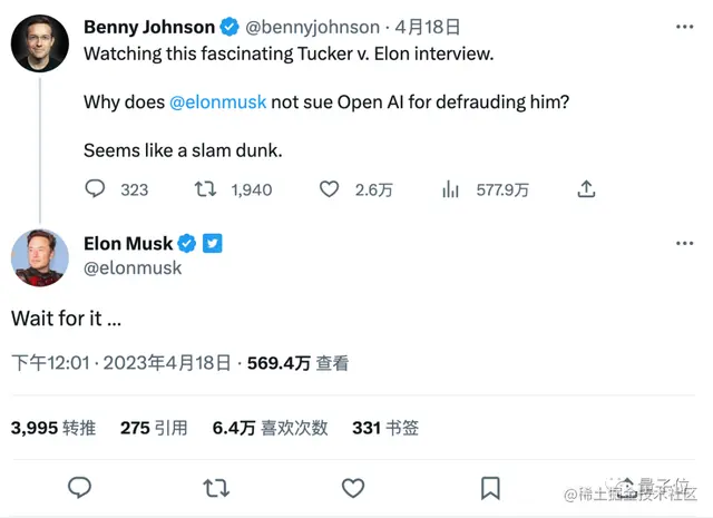 前两天被问到为啥不告OpenAI欺诈时,才刚回复说“走着瞧”。