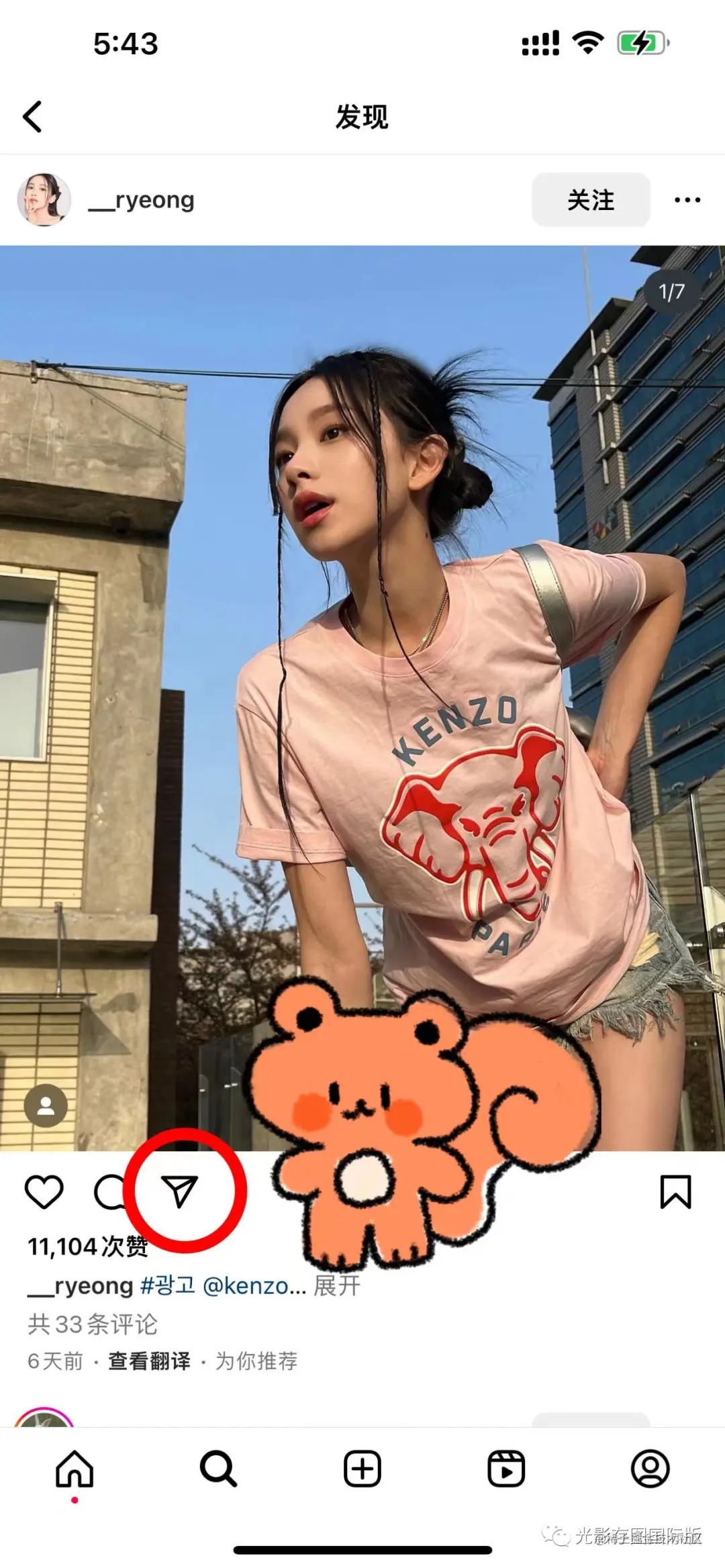 第一步打开我们的Ins找到我们喜欢的图片,点击图片下方“小飞机”图标