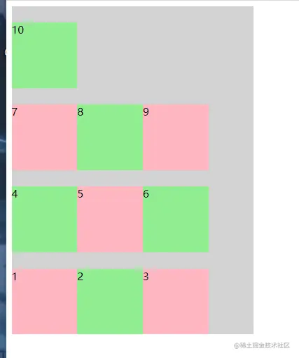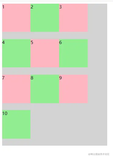 flex-start:元素向主轴起点对齐(行间有间距)。