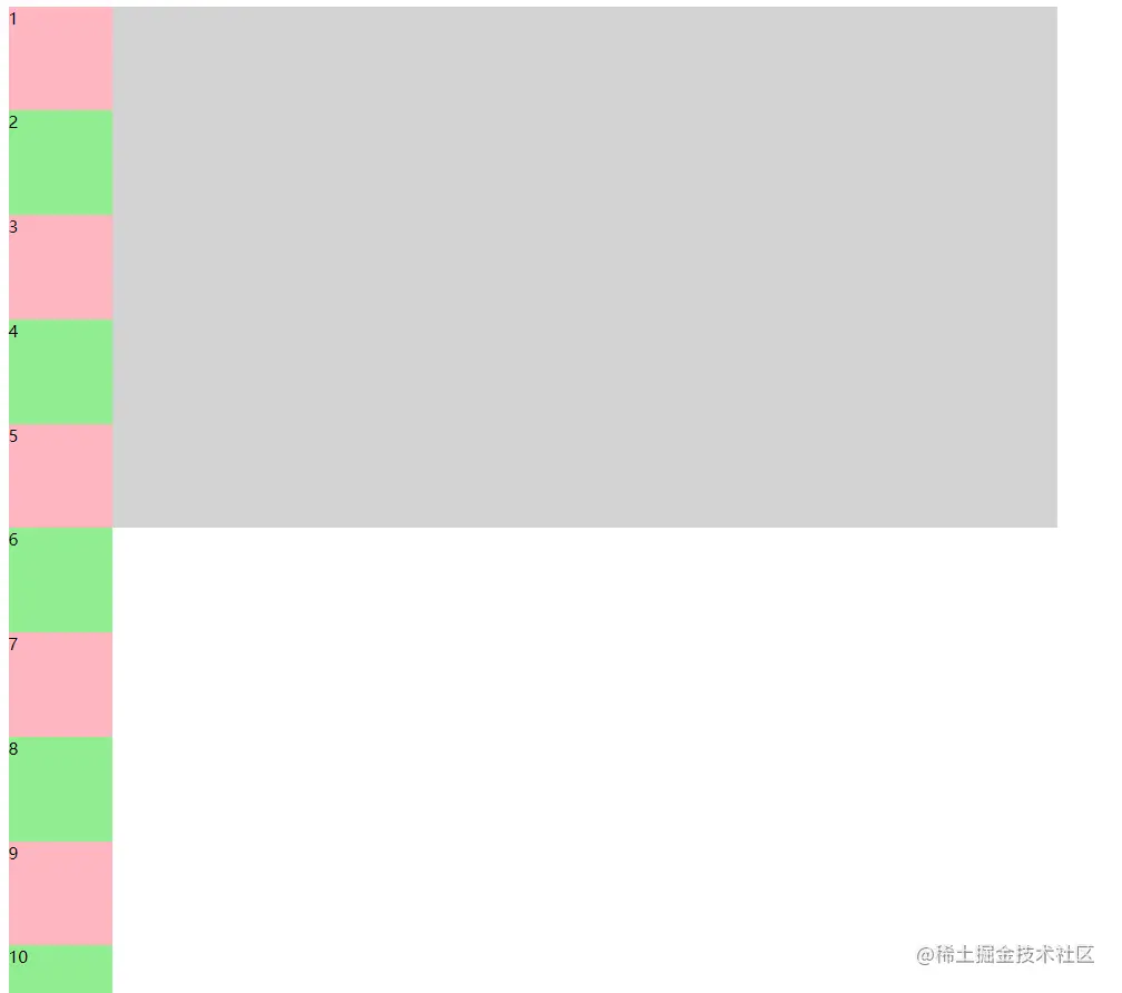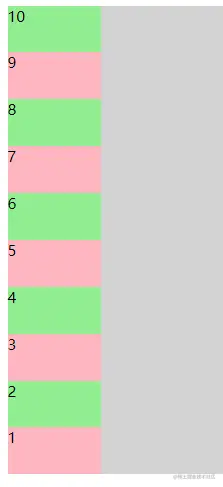 flex-start:所有行从垂直轴起点开始填充。第一行的垂直轴起点边和容器的垂直轴起点边对齐。接下来的每一行紧跟前一行(行间无间距)。