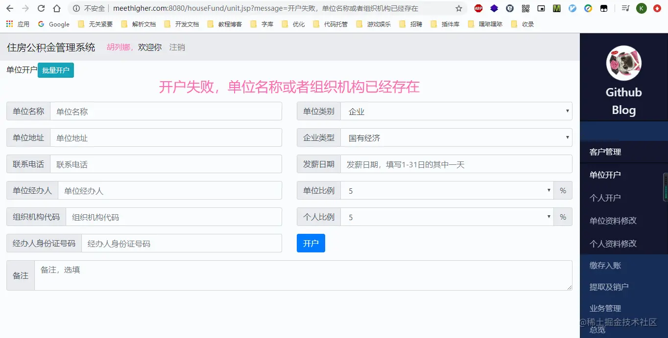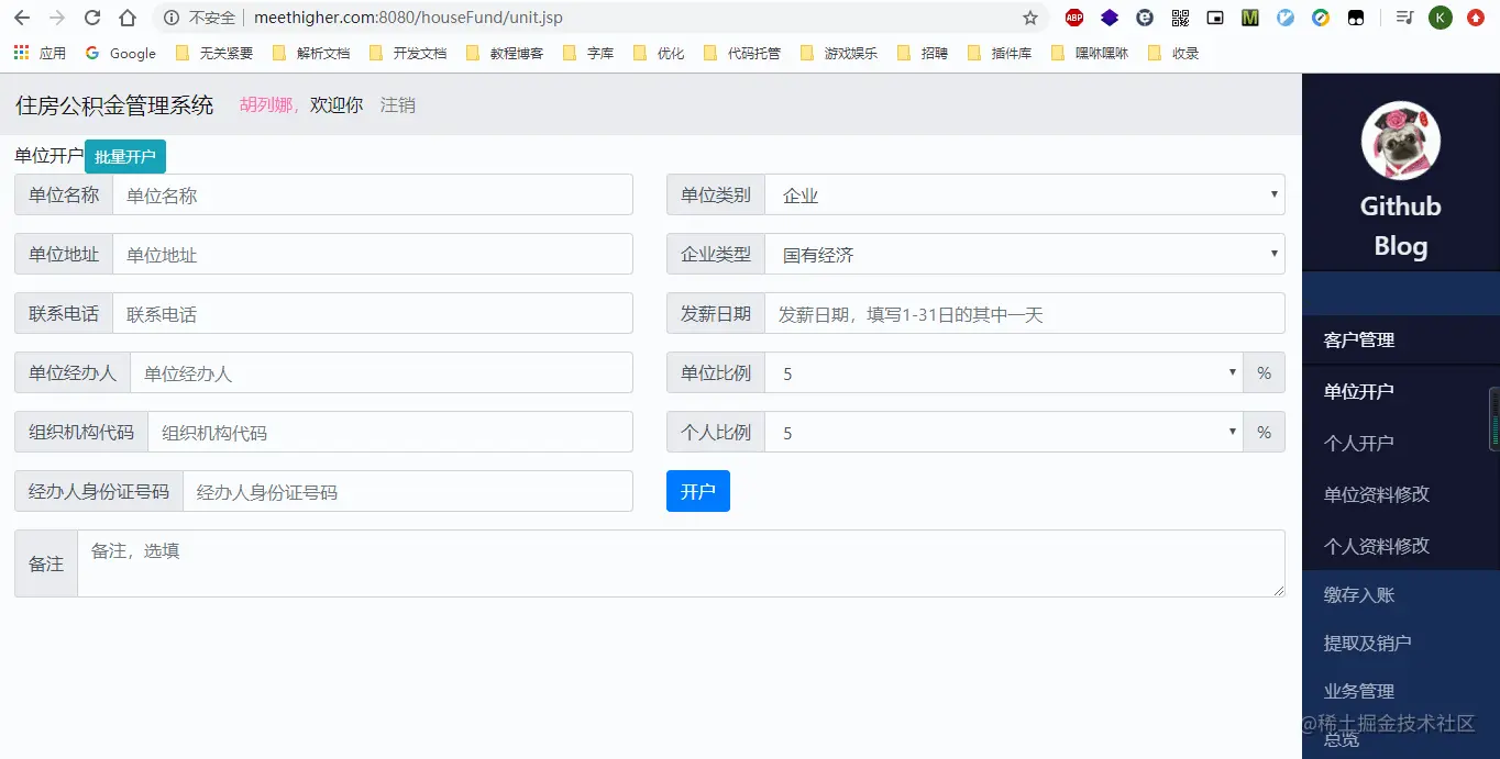 实现一个住房公积金管理系统,主要包括相关客户信息(单位开户、个人开户、单位资料修改、个人资料修改)管理、业务查询(单位查询、个人查询)以及销户(个人销户、单位销户)等功能(其他的还没实现,像批量开户,这个我觉得需要用到事务,事务我还不熟,所以,就鸽了,哈哈)。