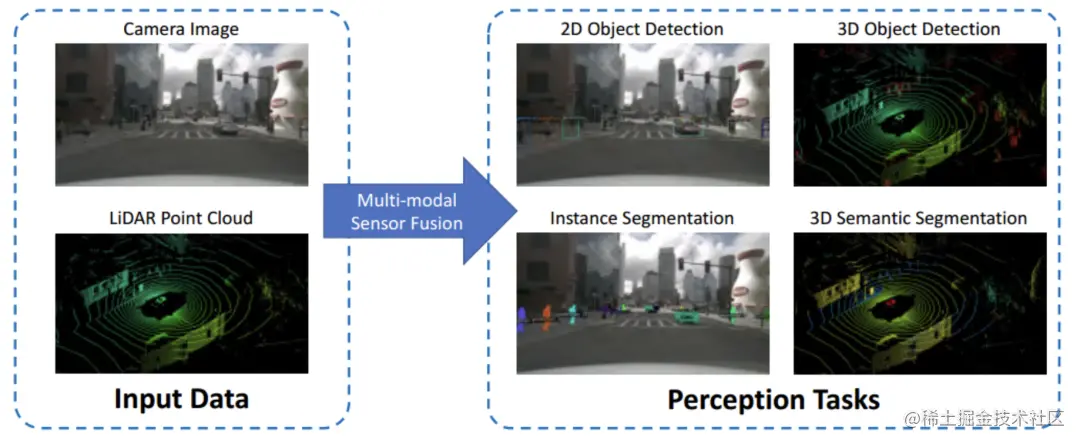 我们通过上表可以发现Camera和LiDAR是几乎互补的,如果结合起来会产生不错的效果。多模态传感器融合意味着信息互补、稳定和安全,长期以来都是自动驾驶感知的重要一环。然而信息利用的不充分、原始数据的噪声及各个传感器间的错位(如时间戳不同步),这些因素都导致融合性能一直受限。