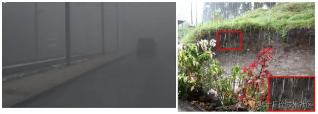 检测和分割是场景理解的关键部分,在机器人、无人驾驶、安防等领域有着广泛的应用。现有的大部分方法主要在正常的成像条件下进行,虽然在性能表现上较好,但是并没有考虑到不良条件(恶劣天气、低光照等)下的场景。现实中的场景是复杂多变的,包含着很多不良的条件给视觉算法带来不利的影响。下面我汇总了常见的不良感知场景,大概可以分为天气和光照两部分: