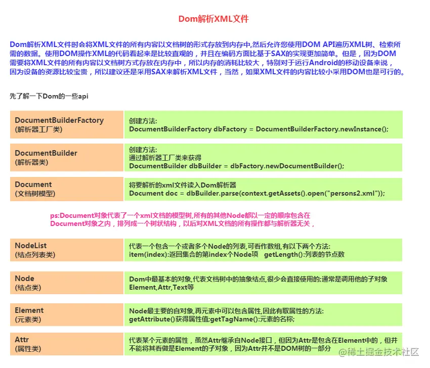 从代码我们就可以看出DOM解析XML的流程,先整个文件读入Dom解析器,然后形成一棵树, 然后我们可以遍历节点列表获取我们需要的数据!