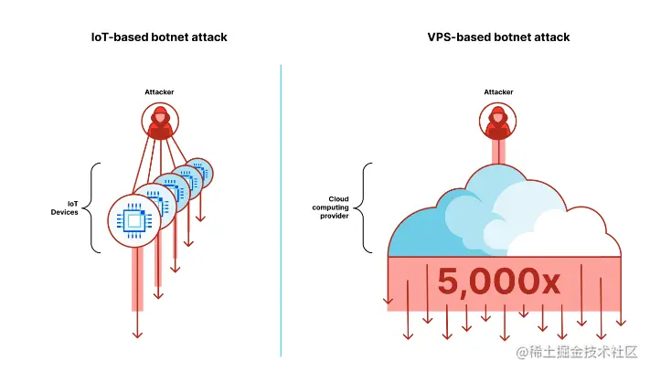 根据互联网安全公司 Cloudflare 报告,新一代僵尸网络开始放弃构建大量薄弱物联网设备的策略,转而利用泄露的 API 凭据或已知漏洞控制 VPS 服务器。这使得黑客可以更轻松构建强度高达 5000 倍的僵尸网络。