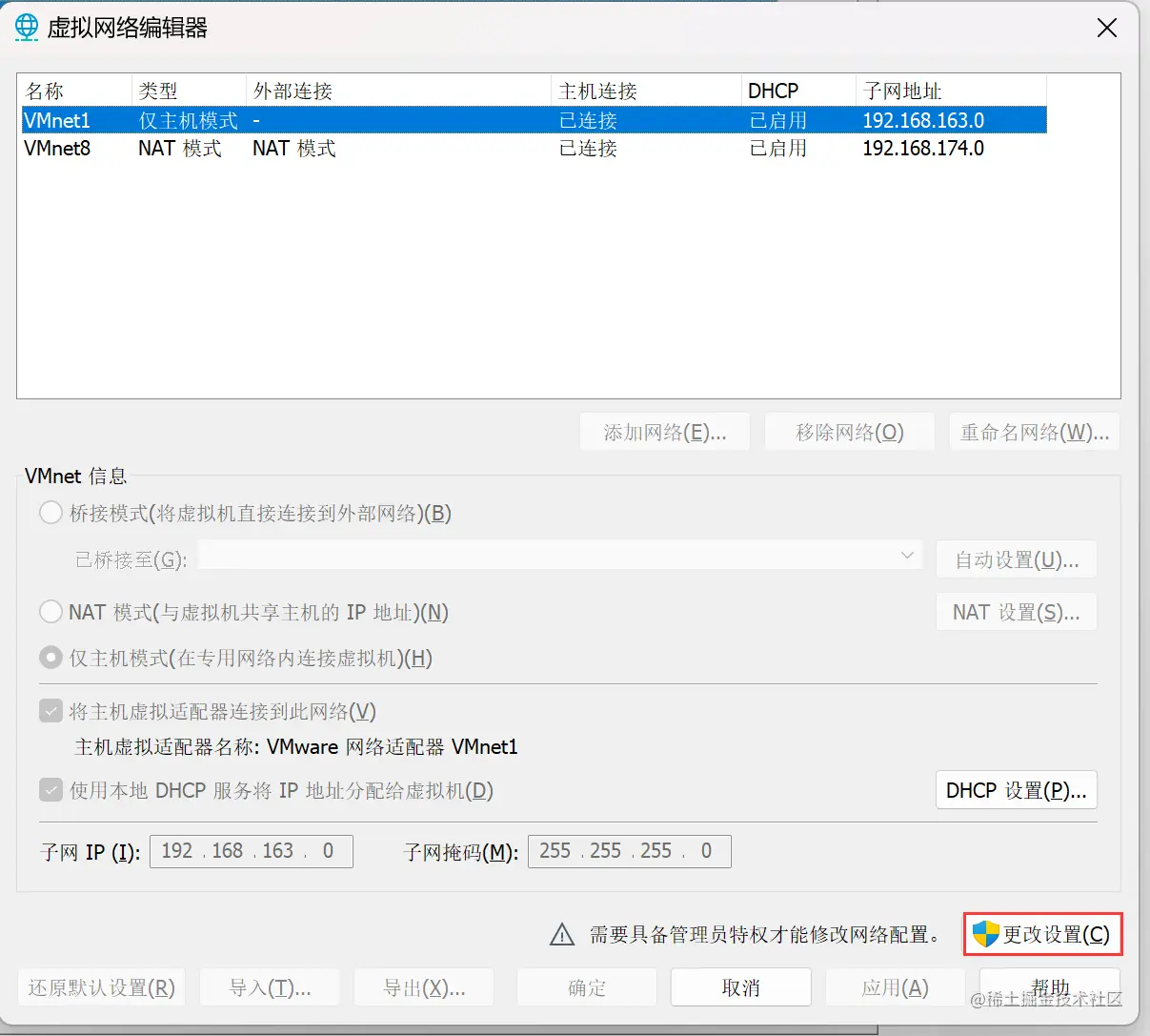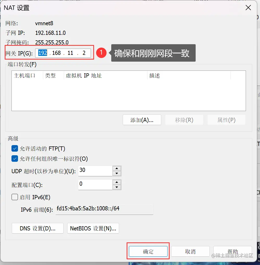 Vmware Workstation 设置静态 IP 莫晓霜 2023-04-22 150 阅读1分钟 1. 打开虚拟网络编辑器 2. 更改设置 网关ip需要设置为192.168.11.2,不要设置为192.168.11.1,不然会出现xshell连接虚拟机很慢的情况。 3. 虚拟机设置 进入目录:cd /etc/sysconfig/network-scripts; 修改网卡配置文件:vi ifcfg-ens33。