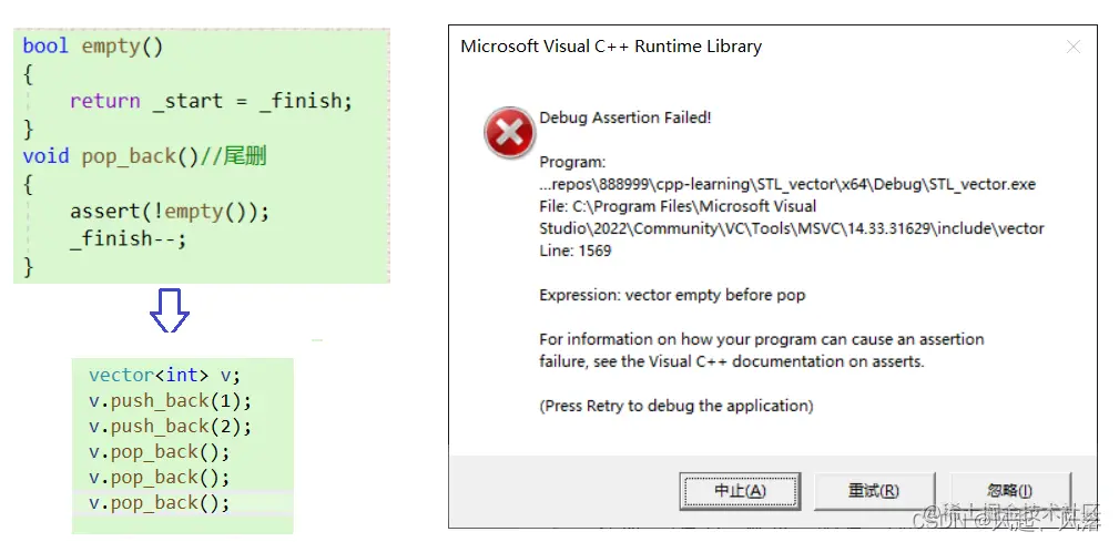 加入修改迭代器位置后,会直接报错 形参pos位置的改变不会影响实参,所以pos依旧指向旧空间